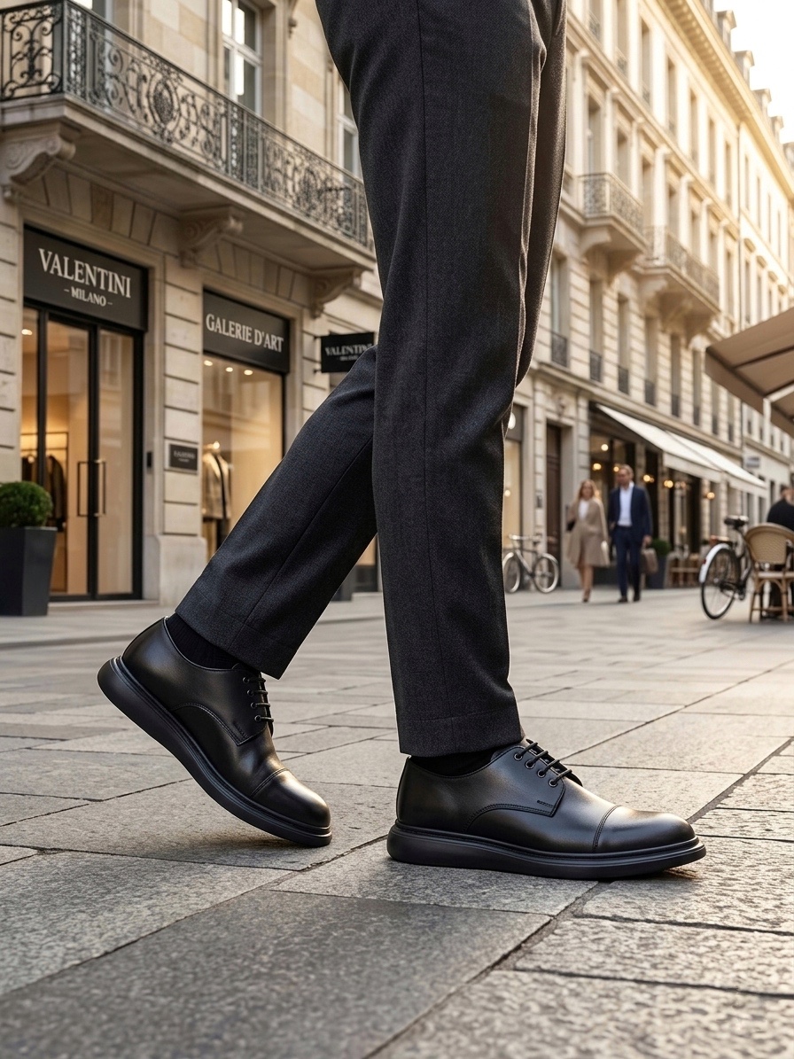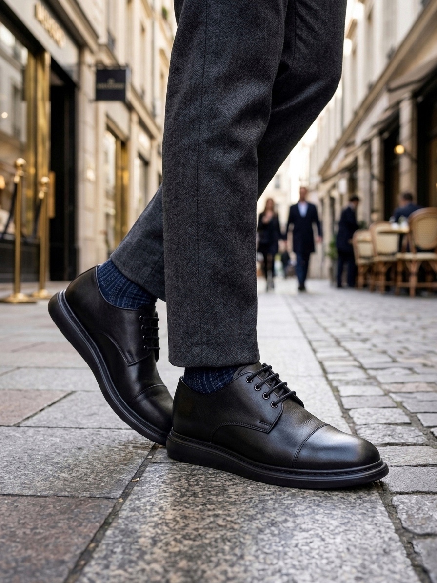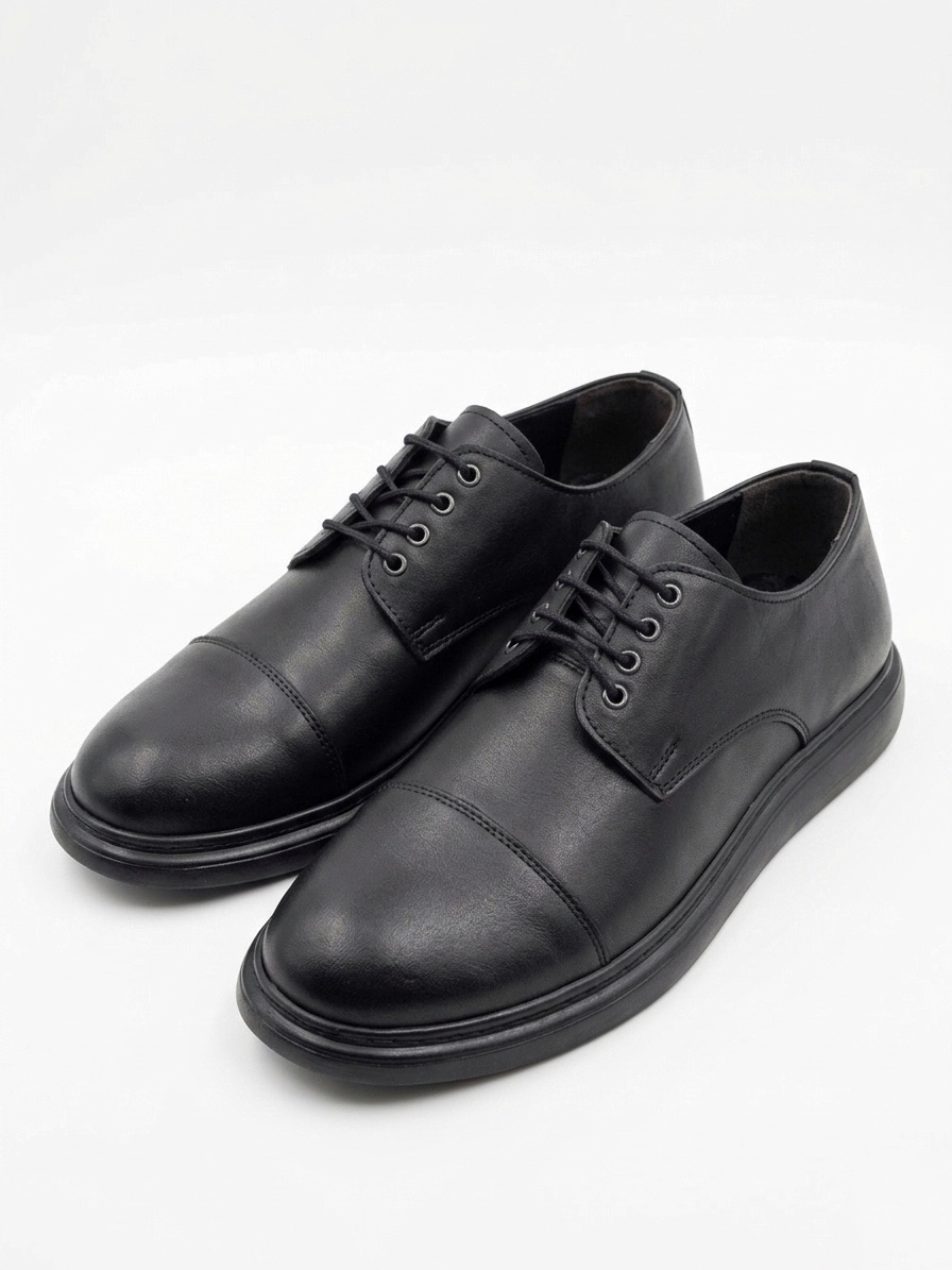 • LVO0003 Siyah Kapaklı Burun Bağcıklı Erkek Oxford Ayakkabı