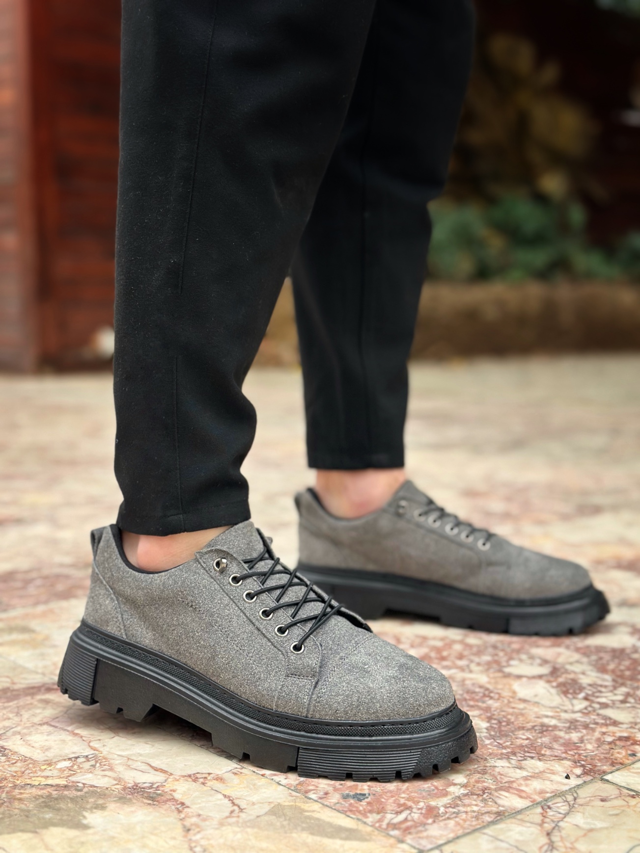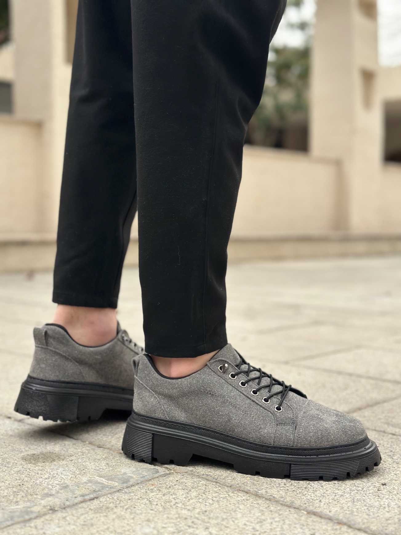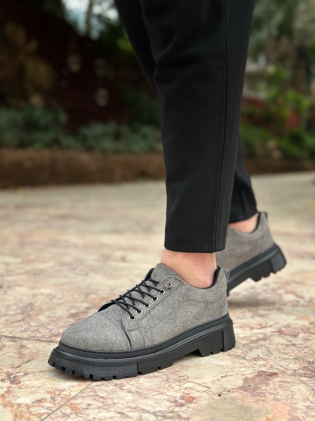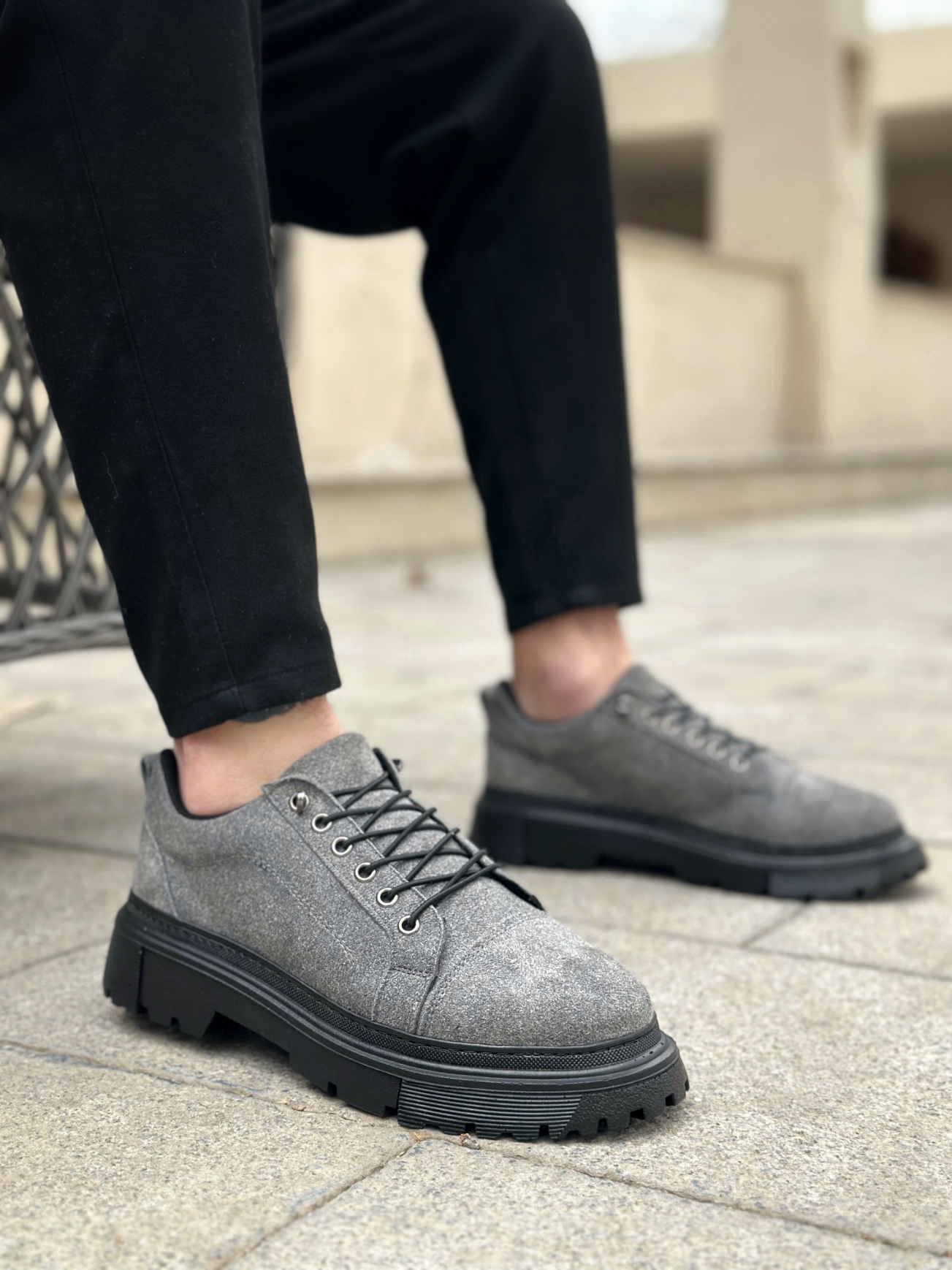 LVO0245 Gri Süet Akıllı Lastik Bağcık Yüksek Taban Günlük Erkek Ayakkabı