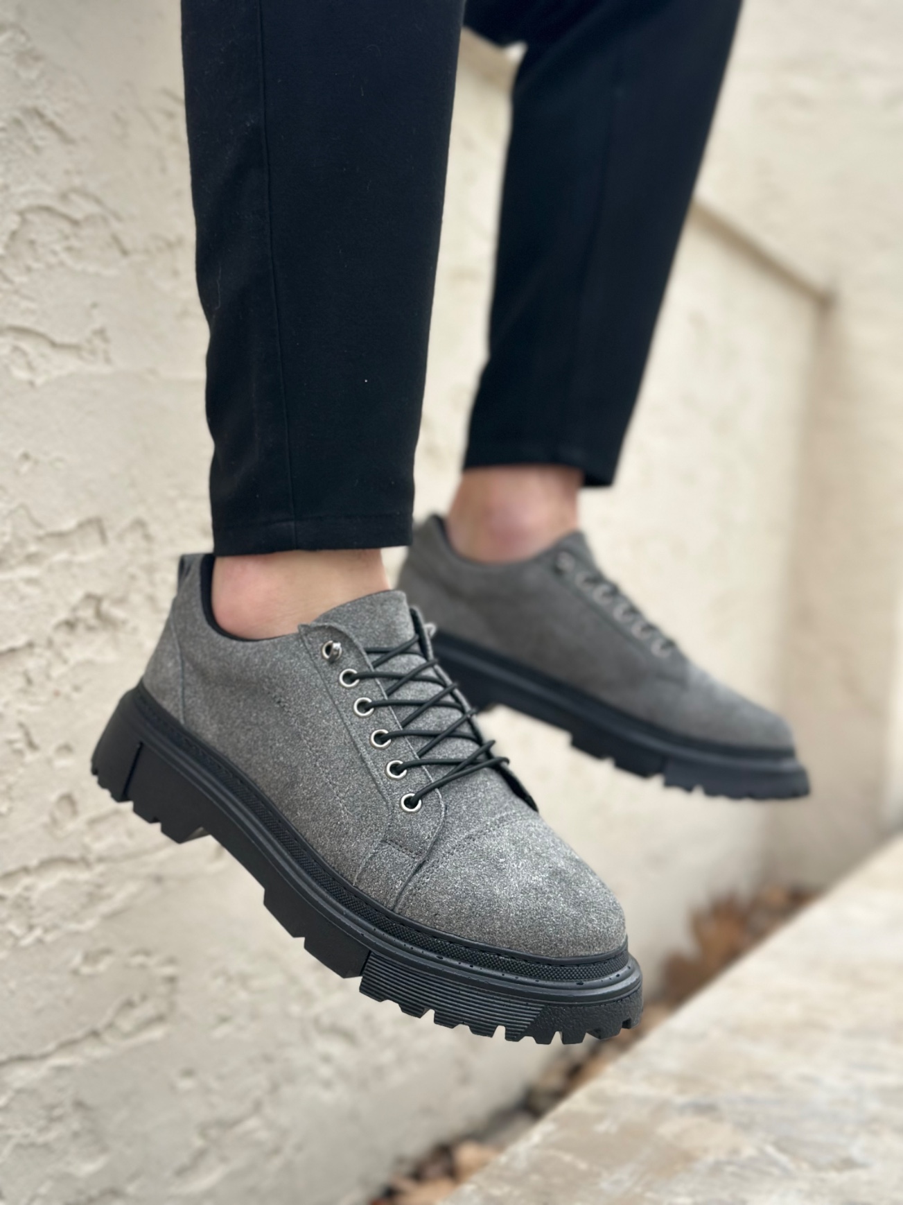 • LVO0245 Gri Süet Akıllı Lastik Bağcık Yüksek Taban Günlük Erkek Ayakkabı