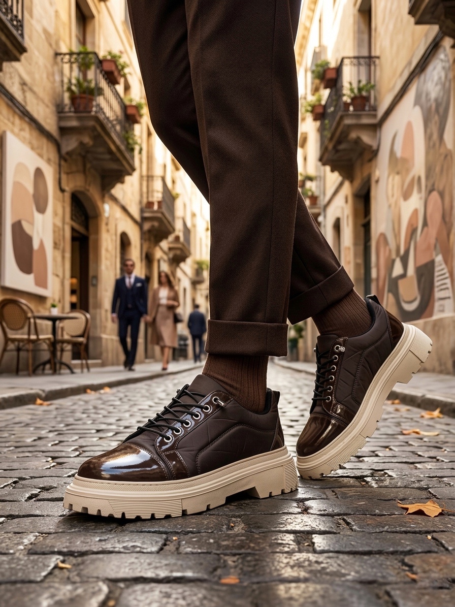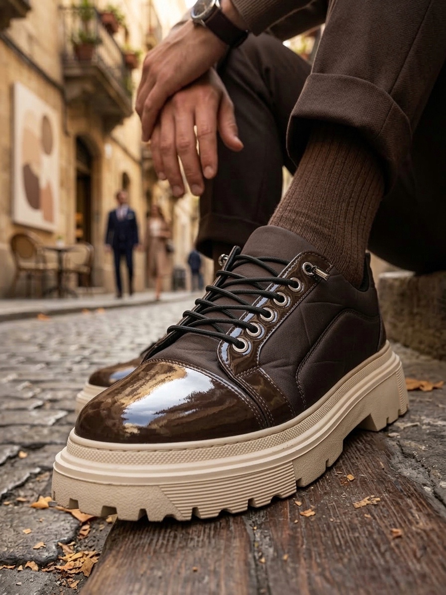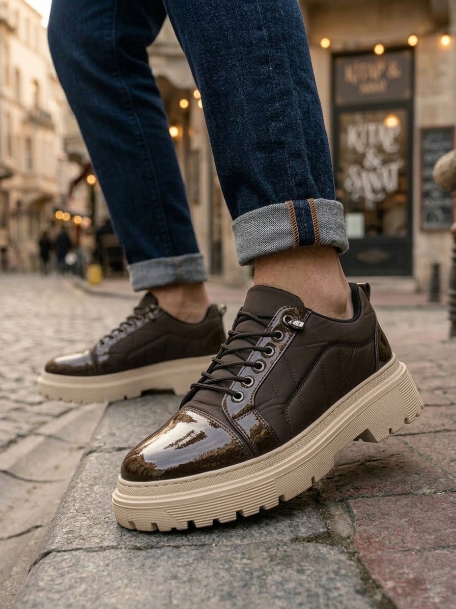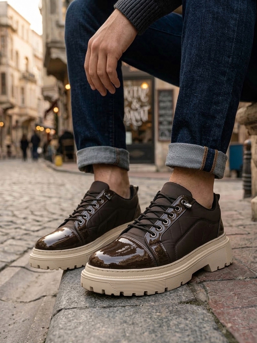 • LVO0245 Kahverengi Rugan Paraşüt Detaylı Akıllı Lastik Bağcık Yüksek Bej Taban Günlük Erkek Ayakkabı