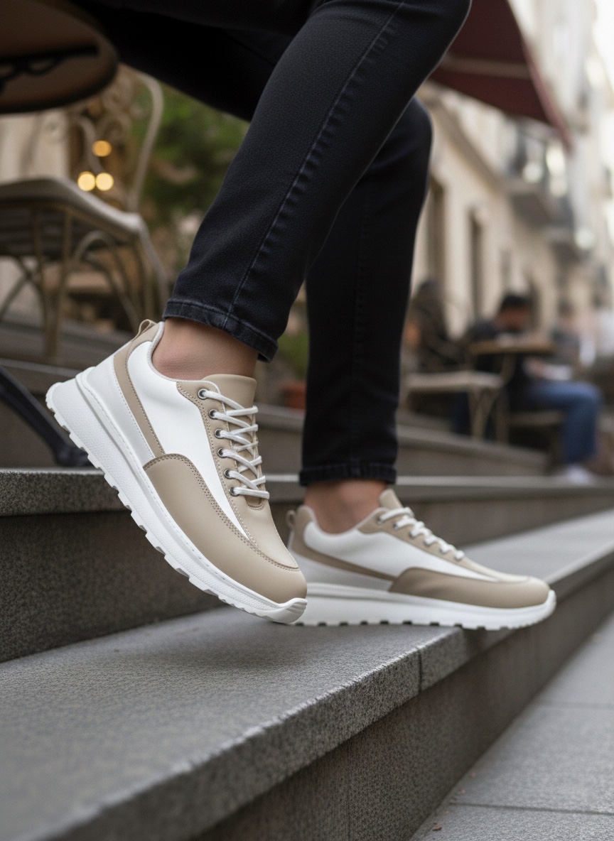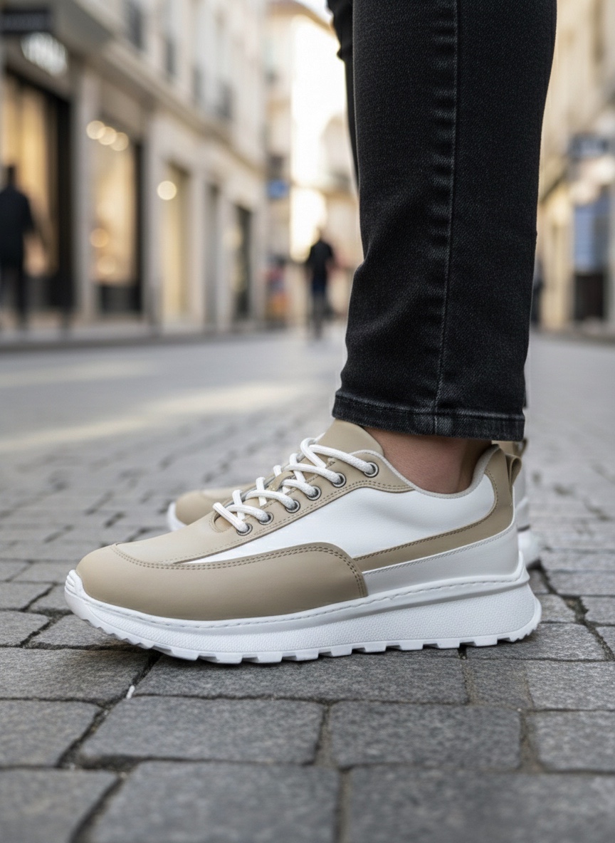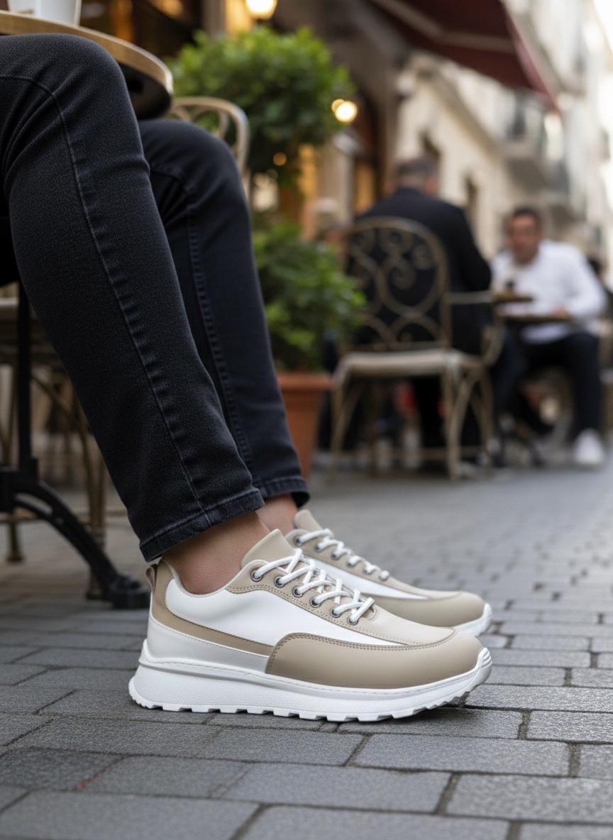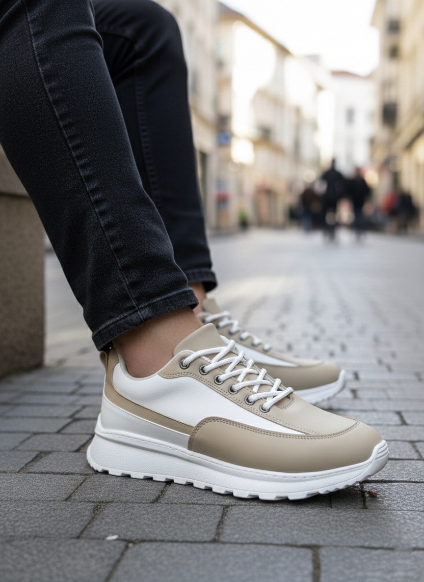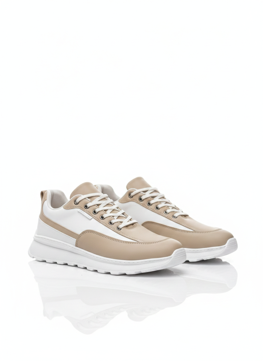 • LVO0246 Krem Bağcıklı Yüksek Beyaz Taban Günlük Erkek Ayakkabı