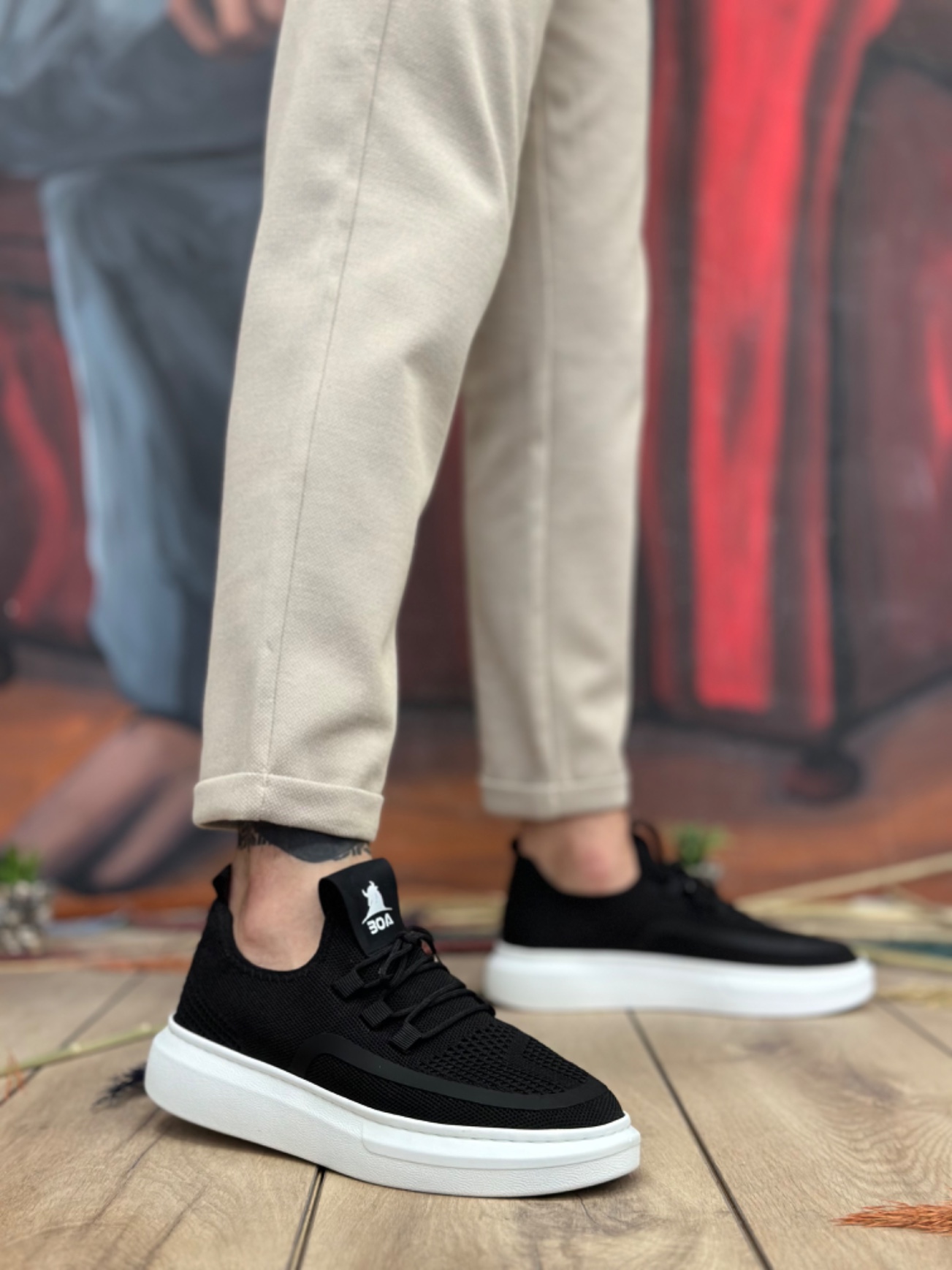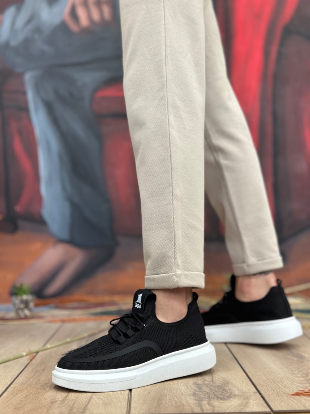 LVO0375 Özel Örme Triko Tarz Siyah Renk Spor Ayakkabı