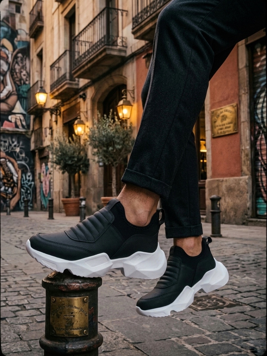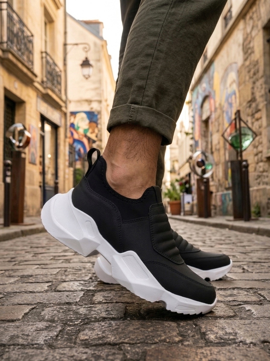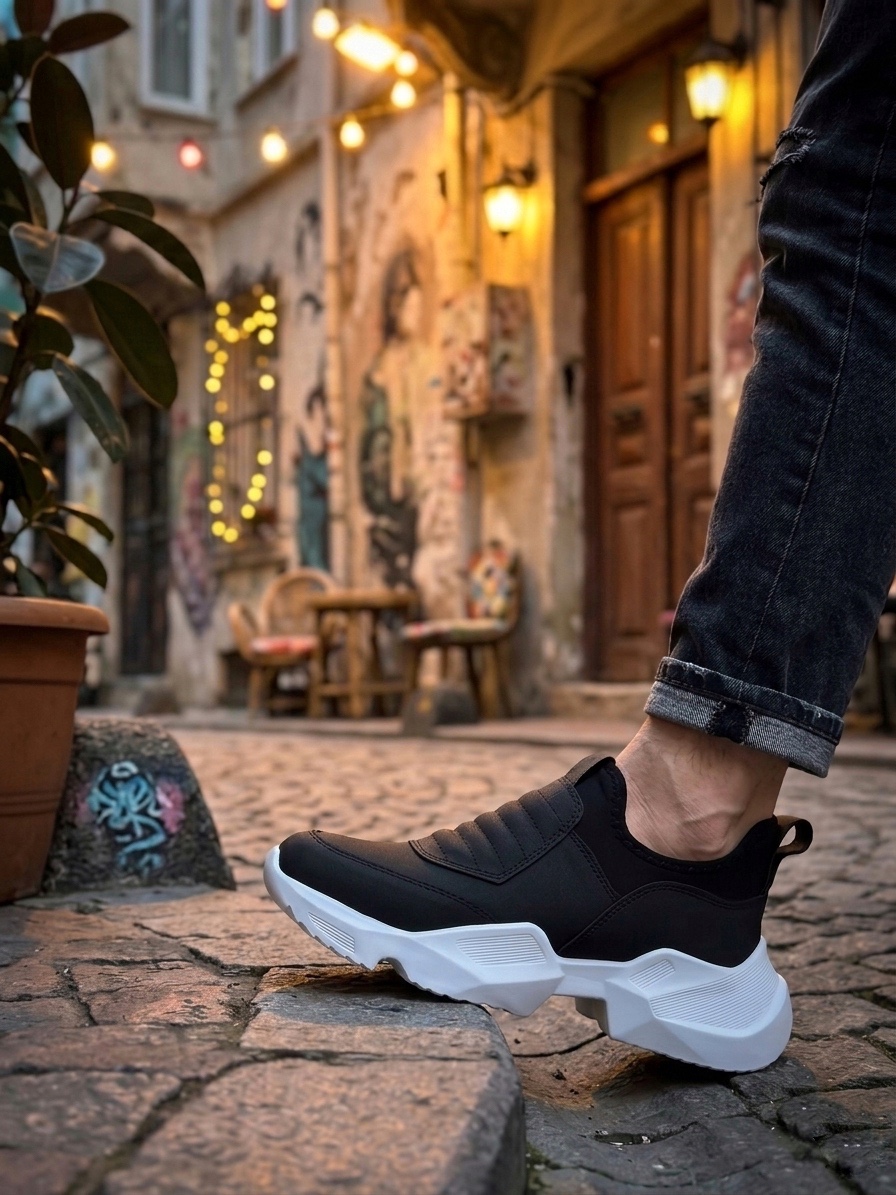 • LVO0402 Bağcıksız Rahat Yüksek Taban Siyah Erkek Spor Yarım Bilek Bot