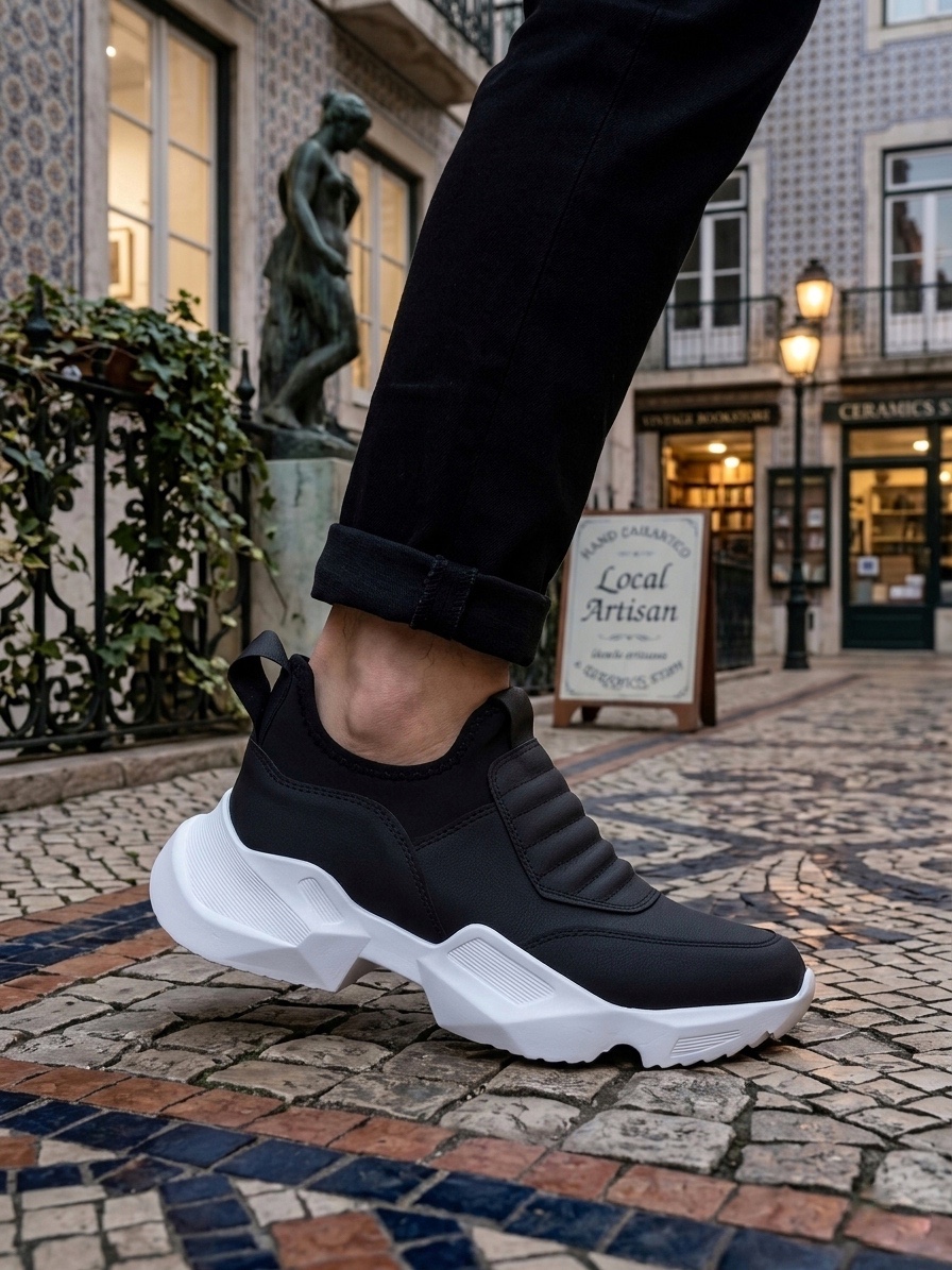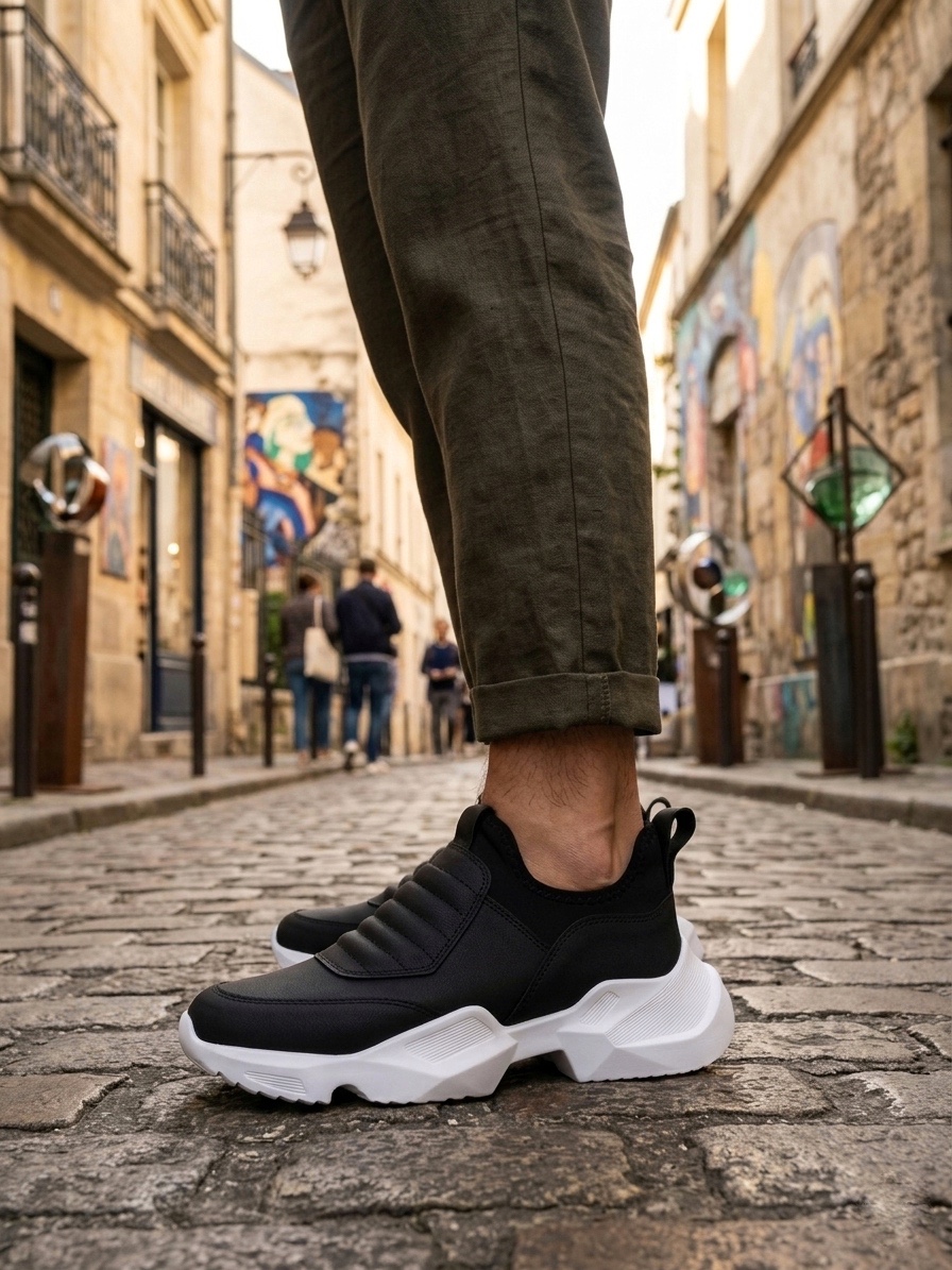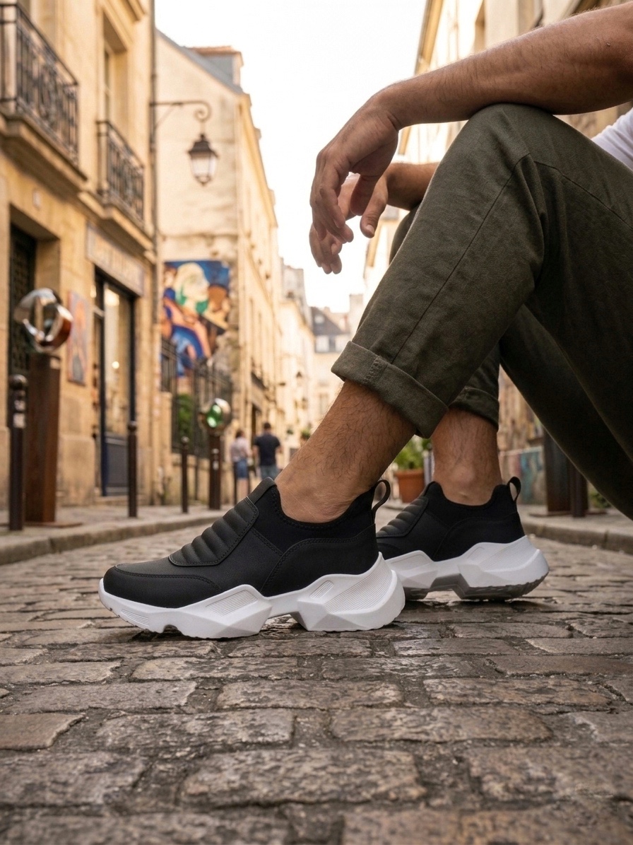 • LVO0402 Bağcıksız Rahat Yüksek Taban Siyah Erkek Spor Yarım Bilek Bot