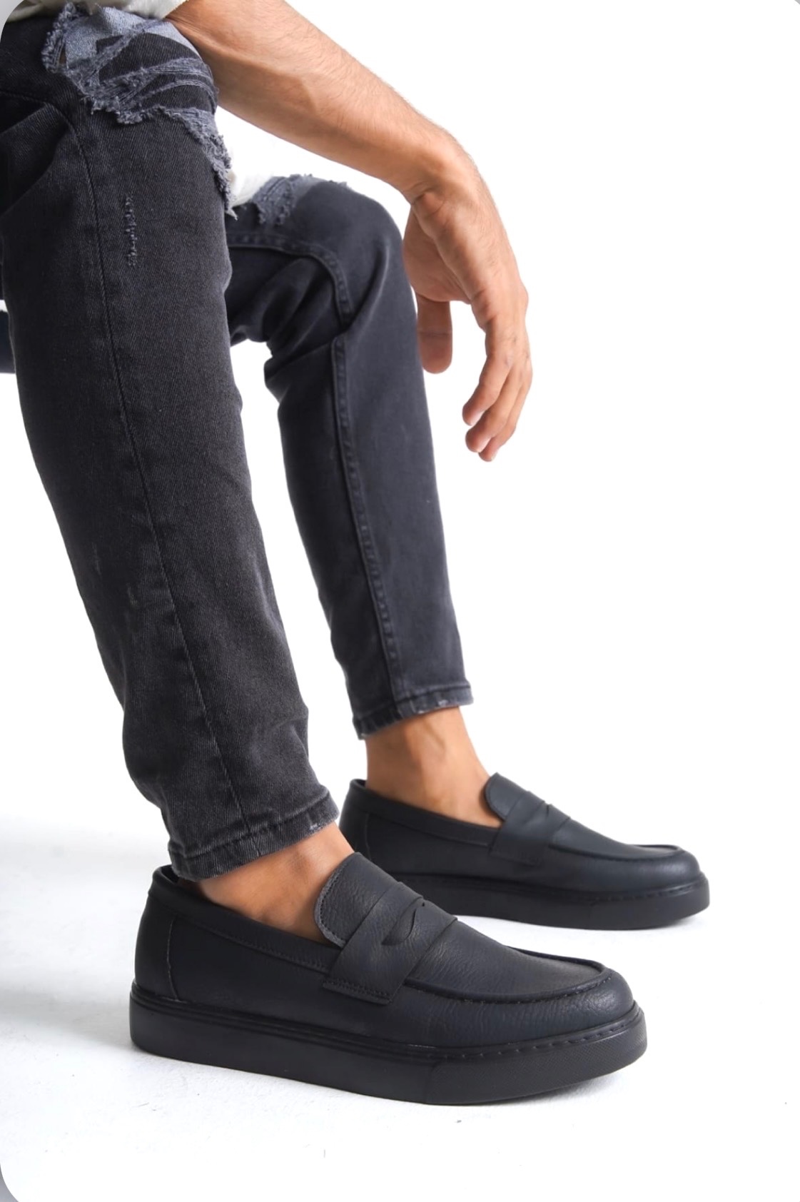 LVO0580 Bağcıksız Kuşaklı Yüksek Siyah Taban Erkek Ayakkabı