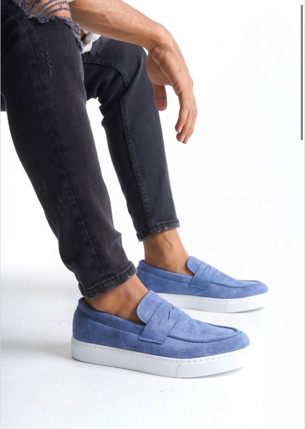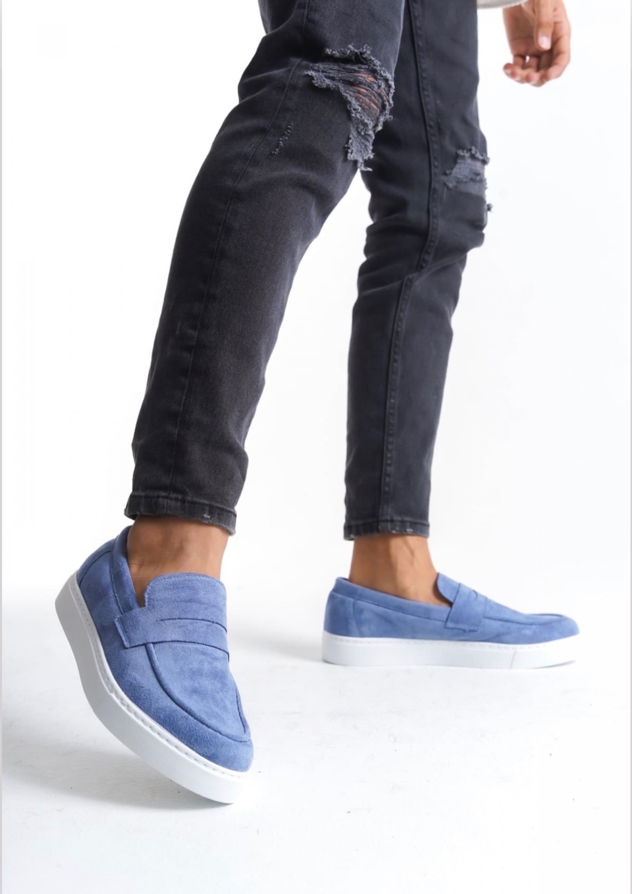 • LVO0580 Bağcıksız Kuşaklı Yüksek Taban Mavi Süet Erkek Ayakkabı