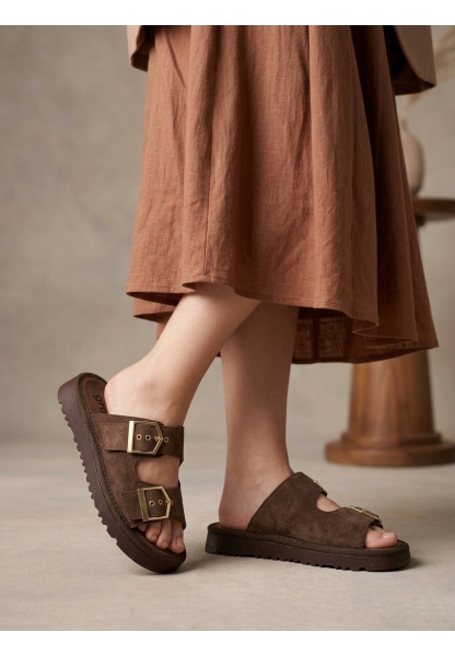 • Yazlık Kadın Bej İnce Taban Tokalı Terlik